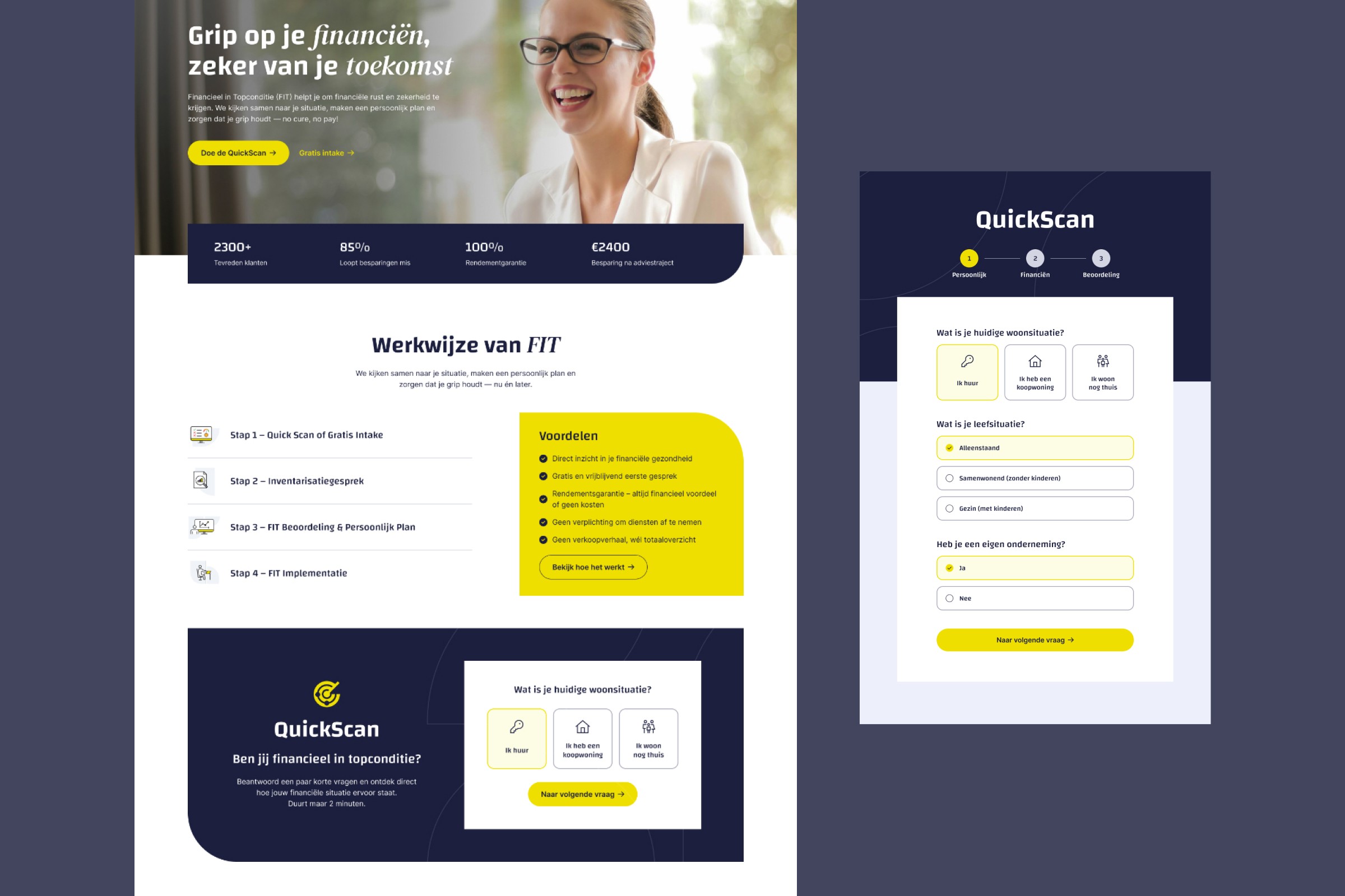 Wij verzorgden het UI/UX-ontwerp van de website, met focus op overzicht, gebruiksgemak en een duidelijke presentatie van complexe financiële informatie. Het resultaat is een intuïtief en professioneel ontwerp dat gebruikers helpt de methode eenvoudig te doorlopen en inzicht te krijgen in hun situatie