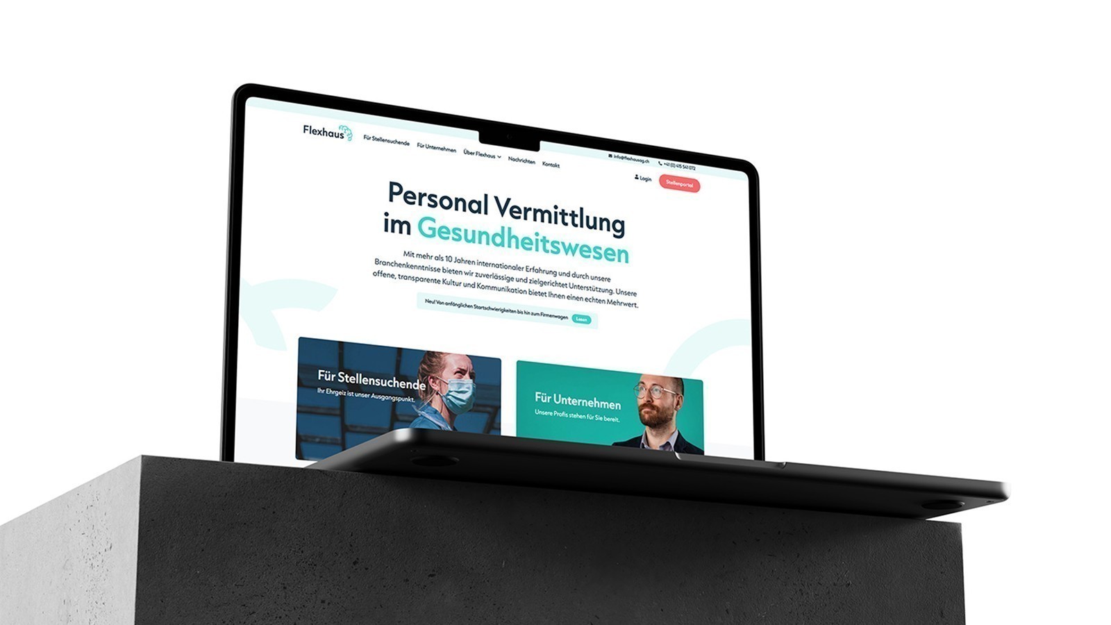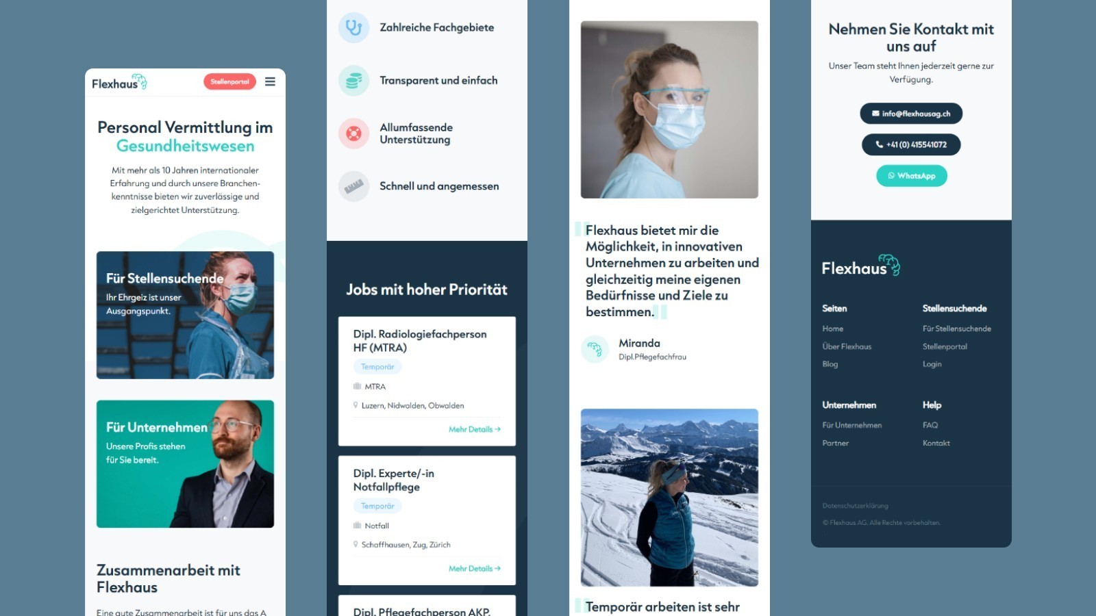 Flexhaus detacheert zorgprofessionals in Zwitserland en koppelt hen aan de juiste zorginstellingen. Zij vroegen ons om hun merk en digitale kanalen professioneler en toekomstbestendig te maken.